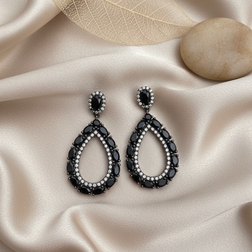 Brinco Gota Luxo Preto – Elegância e Sofisticação