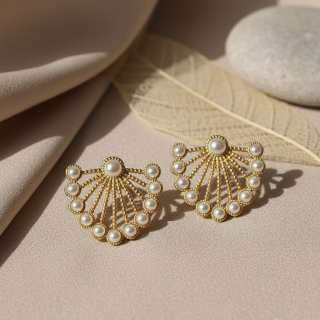 O Brinco Leque Dourado com Pérolas é o acessório perfeito para mulheres que amam peças clássicas e elegantes. Com design inspirado na beleza dos leques vintage, esse modelo folheado a ouro é adornado com delicadas pérolas sintéticas, proporcionando um toque sofisticado e atemporal.
