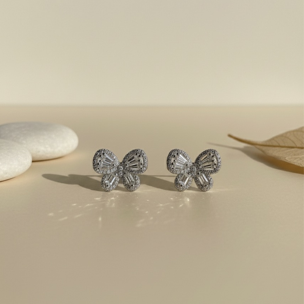 Seu formato de borboleta traz um ar romântico e discreto, perfeito para compor um mix de brincos ou usar sozinho como destaque.
