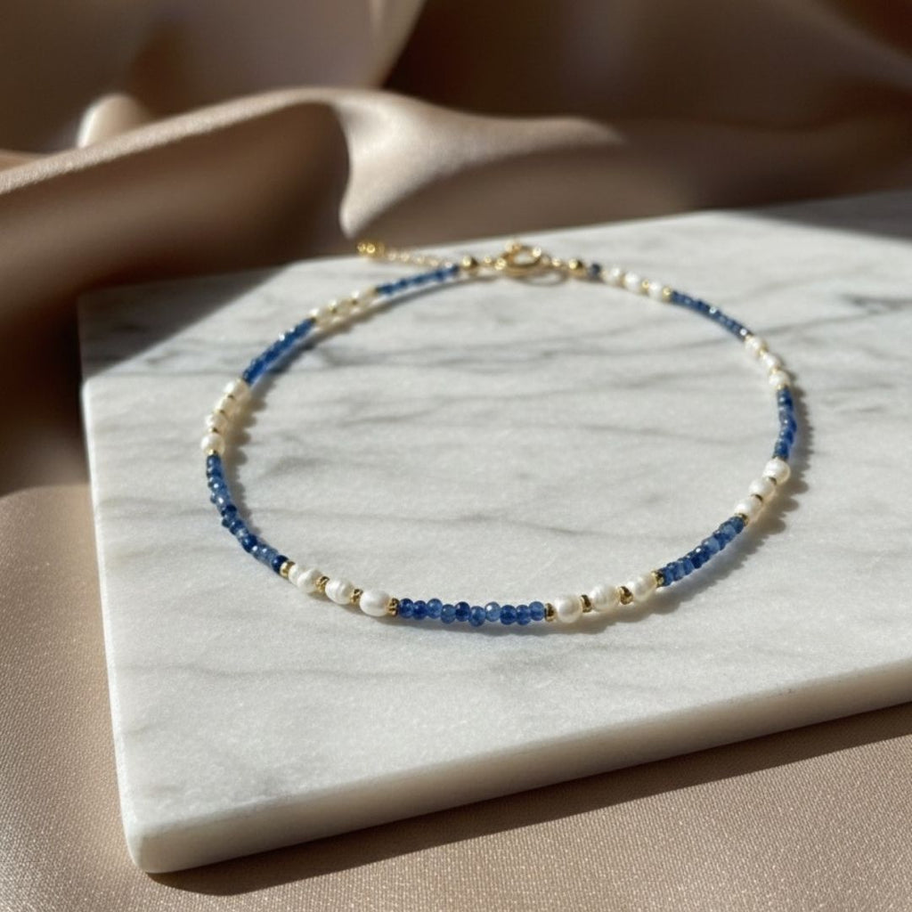 Delicadeza e sofisticação em uma única peça: o Colar de Pérolas Naturais e Cristais Azuis com Banho de Ouro traz a combinação perfeita entre elegância clássica e modernidade. As pérolas naturais oferecem um brilho orgânico e atemporal, enquanto os cristais azuis adicionam um toque de cor refinada, criando um visual leve, feminino e extremamente elegante.
